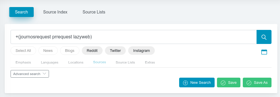 We use parenthesis to group things together. Every space is interpreted as an OR operator. The AND operator must be explicitly used. So, the above reads as âmust include journorequest OR prrequest OR lazywebâ. Great.