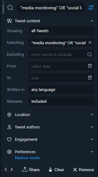 There are many social listening platforms that complicate the process of query building. That is, the search phrase and filters we use to pull data from Twitter.